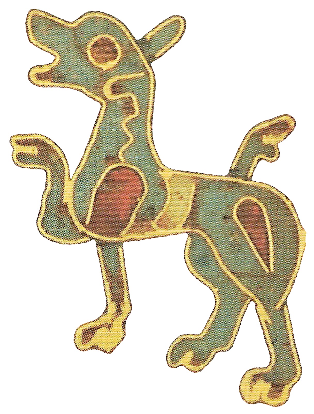 18. ábra. Az 531 táján a mervi oázisban készített Szent Korona Szent Péter zománcának oroszlánja szintén egy "hegyen folyó" ligatúrát visel