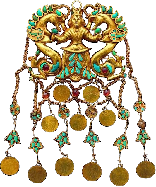(1) A turul tollai a más leleteken is "fejjel lefele lógó" nagy hieroglifákra emlékeztetnek (4., 5. és 6/a. ábra). Azaz esetünkben e tollak a nagy hieroglifák, a nagyon, nagyon nagy ... szósorozat tagjai is lehetnek. A kérdést a további kutatás, az előkerülő újabb párhuzamok sora döntheti el. Fejjel lefele lógó jeleket találunk már egy trialeti aranypoháron is, amely Kr. e. 3000 tájáról maradt ránk és szintén a hurri (szabír) kultúra hagyatéka lehet. A szabír népnév Bíborbanszületett Konstantin szerint a magyarok régi neve (ő szavartü aszfalü alakban említi).